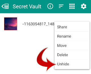 - You can Unhide the files at any time. To unhide the hidden files in Vault just follow below simple step